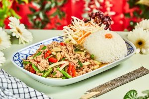 | Velg protein | Kylling, Svin, Scampi, Vegetar |